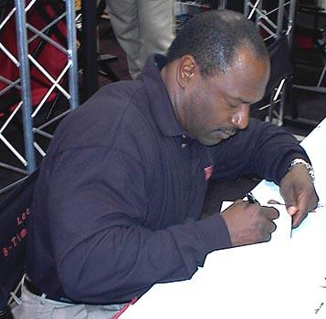 The former Mr. Olympia was at the Biochem booth meeting his fans, and signing autographs.