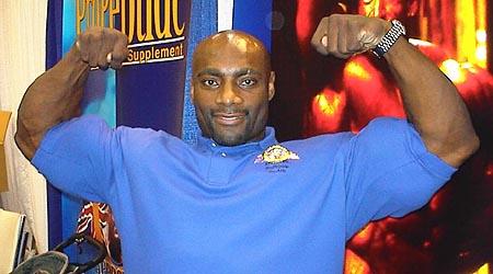 At the Dorian Yates Approved booth, Ernie Taylor was proudly helping Dorian on his new supplement line. Ernie competed at the 1999 Mr. Olympia that weekend, but did not fare so well, coming in 12th place.