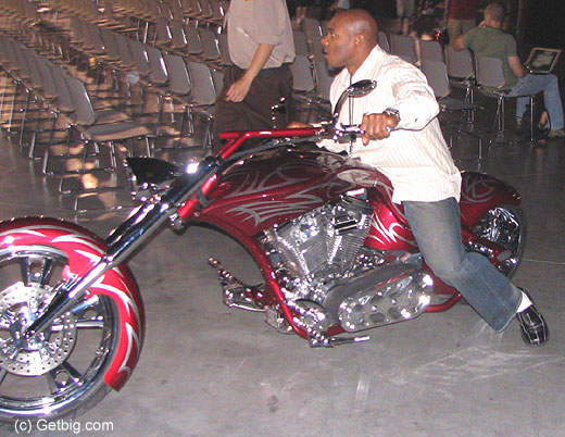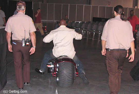 ![]() Flex rides the bike out of the expo