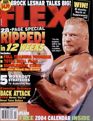 Flex Magazine considers themselves the bible of hardcore bodybuilding. Each month, Flex visits and speaks with the champions of bodybuilding at their gyms, at contests, and at their homes, gathering information and photographs, Flex brings you their latest strategies, and the competitive goals that they apply to further develop their title-winning physiques. On the cover is Brock Lesnar. | ![]() |