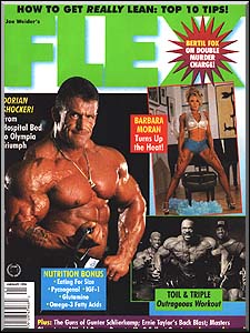 Flex Magazine considers themselves the bible of hardcore bodybuilding. Each month, Flex visits and speaks with the champions of bodybuilding at their gyms, at contests, and at their homes, gathering information and photographs, Flex brings you their latest strategies, and the competitive goals that they apply to further develop their title-winning physiques. Flex is the official magazine of the IFBB Bodybuilding Federation. On the cover are bodybuilders Dorian Yates, Chris Cormier, Shawn Ray, Paul Dillett, and Barbara Moran.