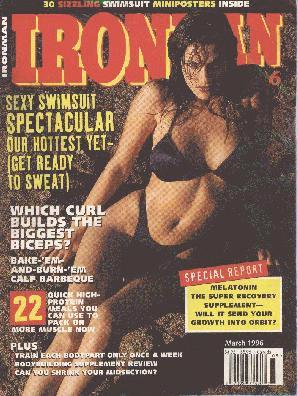 The March 1996 Ironman features the annual sexy swimsuit issue, and who cares about the rest. Since we received it at the end of December, we felt it necessary to read it cover to cover. The women are spectacular! Awesome. Of course, the ad on the back of the magazine is absolutely shocking too!