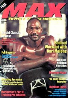 Max Muscle has over 80 stores in the United States and this is their successful small publication, given to Max Muscle shoppers. It contains misc information on contests, news, and the happenings in the Max Muscle bodybuilding and fitness world. On the cover is Karl Malone. | ![]() |