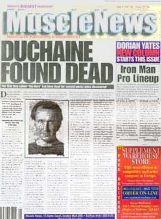 Notes: Muscle News is delivered in Newspaper form, and it's Editorial and Production Manager is Alex Mac. The Exeutive Director is Dorian Yates and Kerry Kayes. Muscle News offices are at 10 Alpha Court, Denton M34 3RB. It's telephone number is 0161-320-5123.