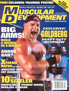 Muscular Development, owned by Twinlab, is another serious bodybuilder magazine that concentrates on natural bodybuilding, but also covers fitness and health related items. They pride themselves on giving its readers extensive coverage on the cutting edge of training, diet and nutrition articles. It also has great pictures of bodybuilders, and makes for enjoyable reading. The look of natural bodybuilding and less on the hardcore look is what Muscular Development stands for. With everything geared towards the natural look, it continues to attack steroids, drugs, etc. On the cover is WCW's Bill Goldberg. |