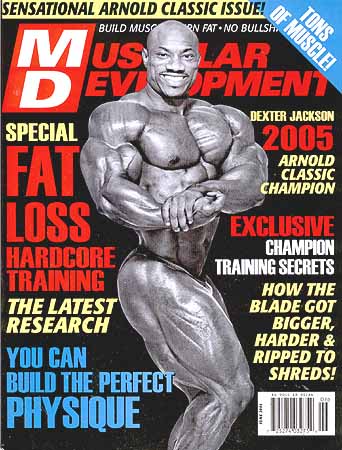 Muscular Development is another serious bodybuilder magazine that concentrates on hardcore bodybuilding, but also covers fitness and health related items. They pride themselves on giving its readers extensive coverage on the cutting edge of training, diet and nutrition articles. It also has great pictures of bodybuilders, and makes for enjoyable reading. On the cover is Dexter Jackson. |