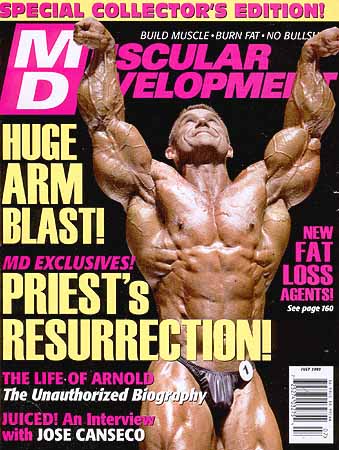 Muscular Development is another serious bodybuilder magazine that concentrates on hardcore bodybuilding, but also covers fitness and health related items. They pride themselves on giving its readers extensive coverage on the cutting edge of training, diet and nutrition articles. It also has great pictures of bodybuilders, and makes for enjoyable reading. On the cover is Lee Priest. |