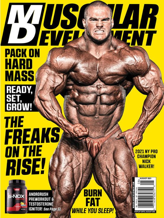 ![]() 2021 New York Pro champion Nick Walker is one of the most exciting rookie pros to come on the scene in years. His nickname is “The Mutant,” and one look at his 250-pound package of rugged, thick and grainy muscle explains why. At only 26 years old, he’s bringing a whole new legion of fans to the sport, a group that calls itself “Walker Nation.” Nick’s popularity and respect in bodybuilding has grown as impressively as his massive physique, which is why he’s on the cover of this month’s Muscular Development. . On the cover is Nick Walker |