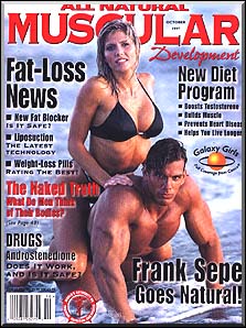 The look of natural bodybuilding and less on the hardcore look is what Muscular Development stands for. With everything geared towards the natural look, it continues to attack steroids, drugs, etc. On the cover is Frank Sepe and fitness competitor Tori Wilson, photographed by Per Barnal.