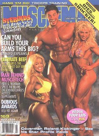 The July issue has Roland Kickinger as the Star Profile, the new pro who debuted at the Ironman. Also, more on the interesting Muscletech supplements, as Paul G. Newman talks about them. Paul DeMayo explains how you can build your arms, and Jay Cutler argues that more fat is good for your bodybuilding diet. The Annual Dubious Achievement Awards