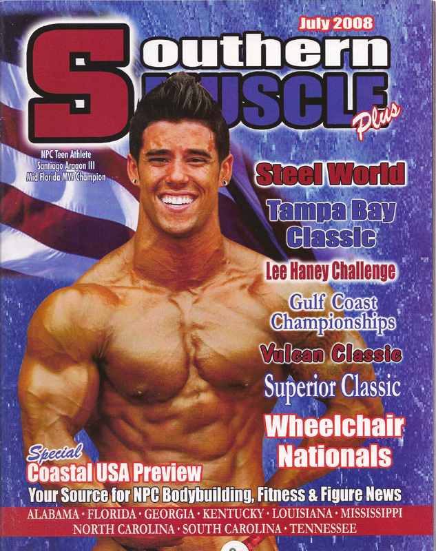 Southern Muscle Magazine is your source for bodybuilding, fitness and powerlifting news for the Southern states of the United States, including Alabama, Florida, Georgia, Kentucky, Louisiana, Mississippi, North Carolina, South Carolina and Tennessee.. On the cover is Santiago Aragon III, Mid Florida MW Champion