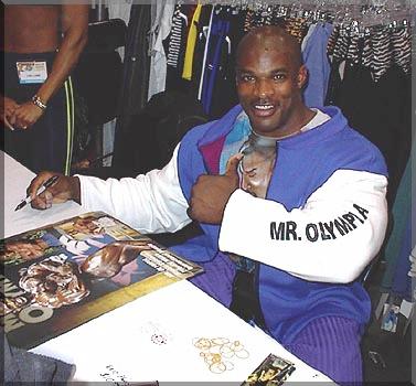 Ronnie Coleman The reigning 1998 Mr. Olympia, Ronnie is the number one bodybuilder in the world, having captured the top honors last October in New York. Ronnie will be back in Las Vegas in October this year to defend his title. Ronnie was on top of the world, as his girlfriend, Vickie Gates won the Ms. International on Saturday night. He met Vickie in 1992 at a GNC store. Ronnie was born Ronald Dean Coleman. on May 13, 1964 in Bastrop, Louisiana. Height 5'11". His mother's name is Jessie Benton. He is a Arlington, Texas police officer. Ronnie graduated from Grambling State College. in Louisiana with a degree in Accounting. Ronnie has been in a lot of contests, including the 1990 Mr. Texas 1st; 1993 Niagara Falls Pro 6th; 1993 French Pro 4th; 1993 German Pro 6th; 1994 Mr. Olympia 15th; 1994 German Pro 3rd; 1994 French Pro 3rd; 1995 Houston Pro 6th; 1995 Night of Champions 3rd; 1995 Canada Montreal Pro 1st; 1995 Mr. Olympia 10th; 1995 Grand Prix Russia 6th; 1995 Grand Prix France 4th; 1995 Grand Prix Ukraine 3rd; 1996 Night of Champions 2nd; 1996 Canada Pro 1st; 1996 Florida Cup Pro 2nd; 1996 Mr. Olympia 6th; 1997 Ironman Pro 3rd; 1997 Arnold Classic 4th; 1997 San Jose Pro 6th; 1997 Mr. Olympia 9th; 1997 Grand Prix Hungary 6th; 1997 Grand Prix Spain 7th; 1997 Grand Prix Germany 5th; 1997 Grand Prix England 5th; 1997 Grand Prix Czech 4th; 1997 Grand Prix Finland 3rd; 1997 Grand Prix Russia 1st; 1998 San Francisco Pro 2nd; 1998 Toronto Pro 1st; 1998 Night of Champions 1st; 1998 Mr. Olympia 1st; 1998 Grand Prix Germany 1st; 1998 Grand Prix FInland 1st; |