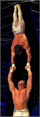 The Alexis Brothers were absolutely amazing here at the 2004 Arnold Classic. They have been working at Cirque du Soleil, but made a special appearance here. They have an amazing ability of strength and these pictures don't do justice to what they do, but it gives you a sense.