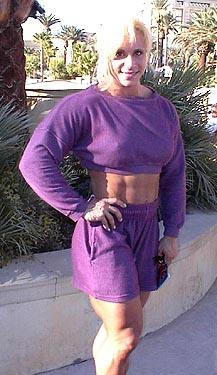 Kim Chivesky is a 4-time reigning Ms. Olympia champion, from 1996 - 1999, and it looks like no one will be able to beat her for the next few years. Kim is married to Chad Nichols, and is surprisingly very pleasant and nice to talk to; albiet all the negativity of female bodybuilding. Kim was at the Muscle Beach area of the Mandalay Bay just enjoying the sites.