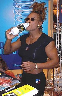 Laura is one of the top 5 bodybuilders of the 1990's, and also a great competitor, and know what a great drink the 'Pure Pro' from American Body Building is. Laura at the Olmypia Weekend was working at the Weider booth.