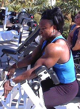 At the Muscle Beach Seminars at the Mandalay Bay Hotel, Vickie Gates was showing the different techniques of working out, as well as posing for photographs and giving advice. Vickie has had an excellent 1999 competition year, winning the Ms. International and coming in 2nd at the Ms. Olympia. Vickie's main squeeze is non other than Mr. Olympia Ronnie Coleman.