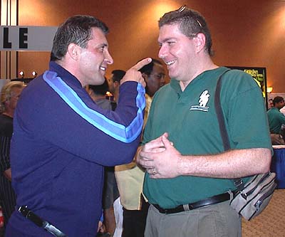 At the press conference, Milos Sarcev is seen with Dennis James and Carlo Teani, an IFBB official, and promotor of the Joe Weider's Pro World in San Marino the following week. Milos Sarcev is the advisor and consultant to Dennis's first venture into the Mr. Olympia. |