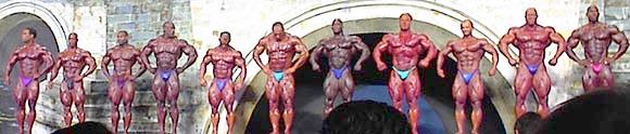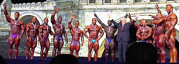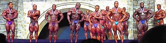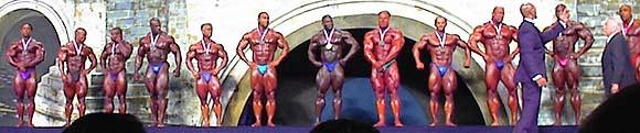 Bodybuilders are waiting for their 2000 Mr. Olympia medal.