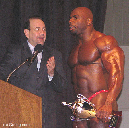 Lonnie Teper, the emcee, congratulating Toney on his win