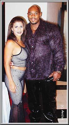 Everybody knows when Flex Wheeler comes into the hall because he definately makes a wave when he walks in. From the time the black limo steps on the curb, people notice Flex. How could you not? With black leather pants, a purplelish fur shirt-coat, and a beautiful styled dress wife, Flex drew stares as he walked to the Biochem booth. Still, Flex, while people think he is arrogant, is quite nice, and somewhat shy, so you can come up to Flex and say hello. When asked on what he thinks will be the outcome of the next Olympia in October, Flex was quite diplomatic, saying he just started to train seriously for that, and intends to be his best ever.