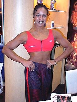 Stacey competed in the 1999 Fitness Olympia, finishing in 11th place. Here she is at the SportPharma booth, saying hello to all of her fans. Previous contests Stacey competed in included the 1997 NPC Team Universe 6th; 1997 NPC Nationals 3rd; 1998 Jan Tana Pro 4th; 1998 Midwest Fitness Pro 3rd; 1998 Fitness Olympia 13th; 1999 Fitness International 8th; 1999 Finland Pro 4th; 1999 Denmark Pro 4th; 1999 World Pro 4th; and the 1999 Jan Tana Pro 5th.